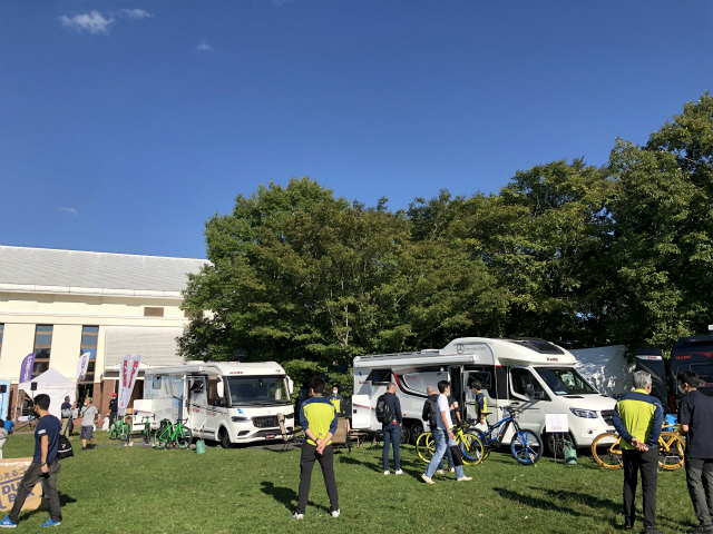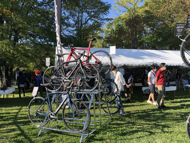 他、受付会場では様々な催しがあり、サイクリングアイテムの展示なども行われます。