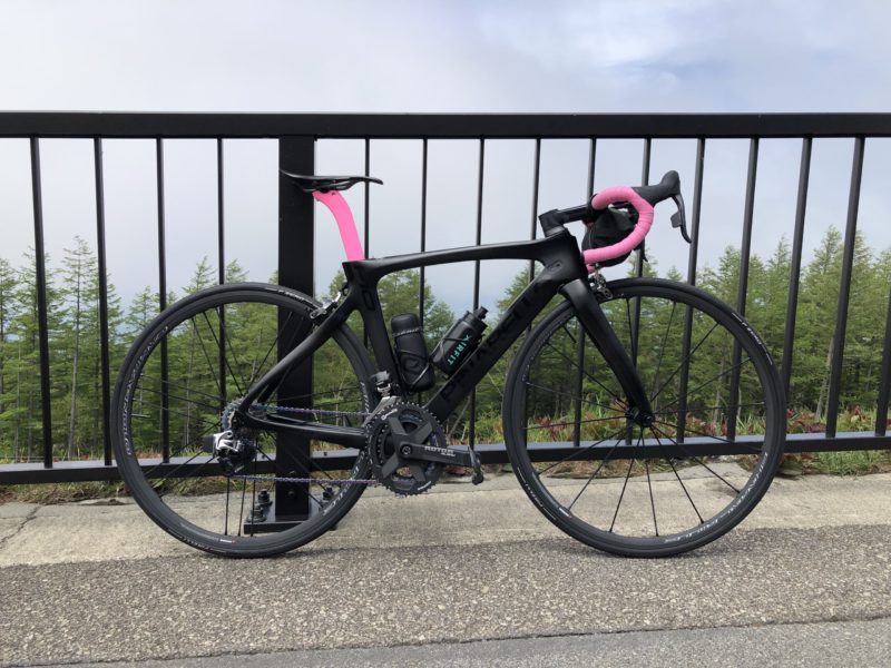 バイクは愛車のドグマF10のリムブレーキタイプで参加いたしました。タイムを狙っての出走ではありませんので、下のブレーキの安定感を狙って、シャマルミレのアルミホイールを装備いたしました。といってもこの状態でボトル、ツールキットレスで6kg台と充分に軽量バイクなのですが。