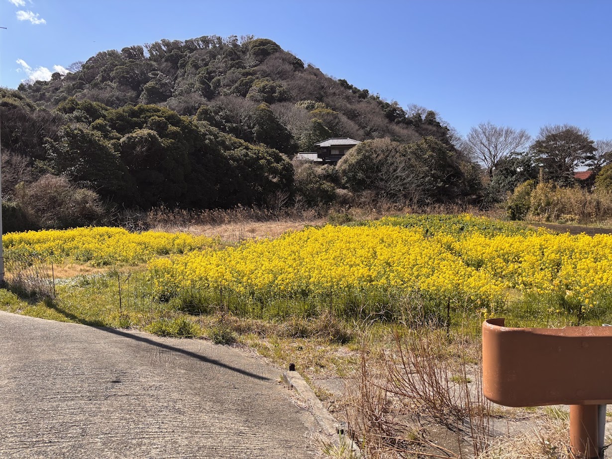 道中には春を感じさせてくれる菜の花畑が広がっています。
