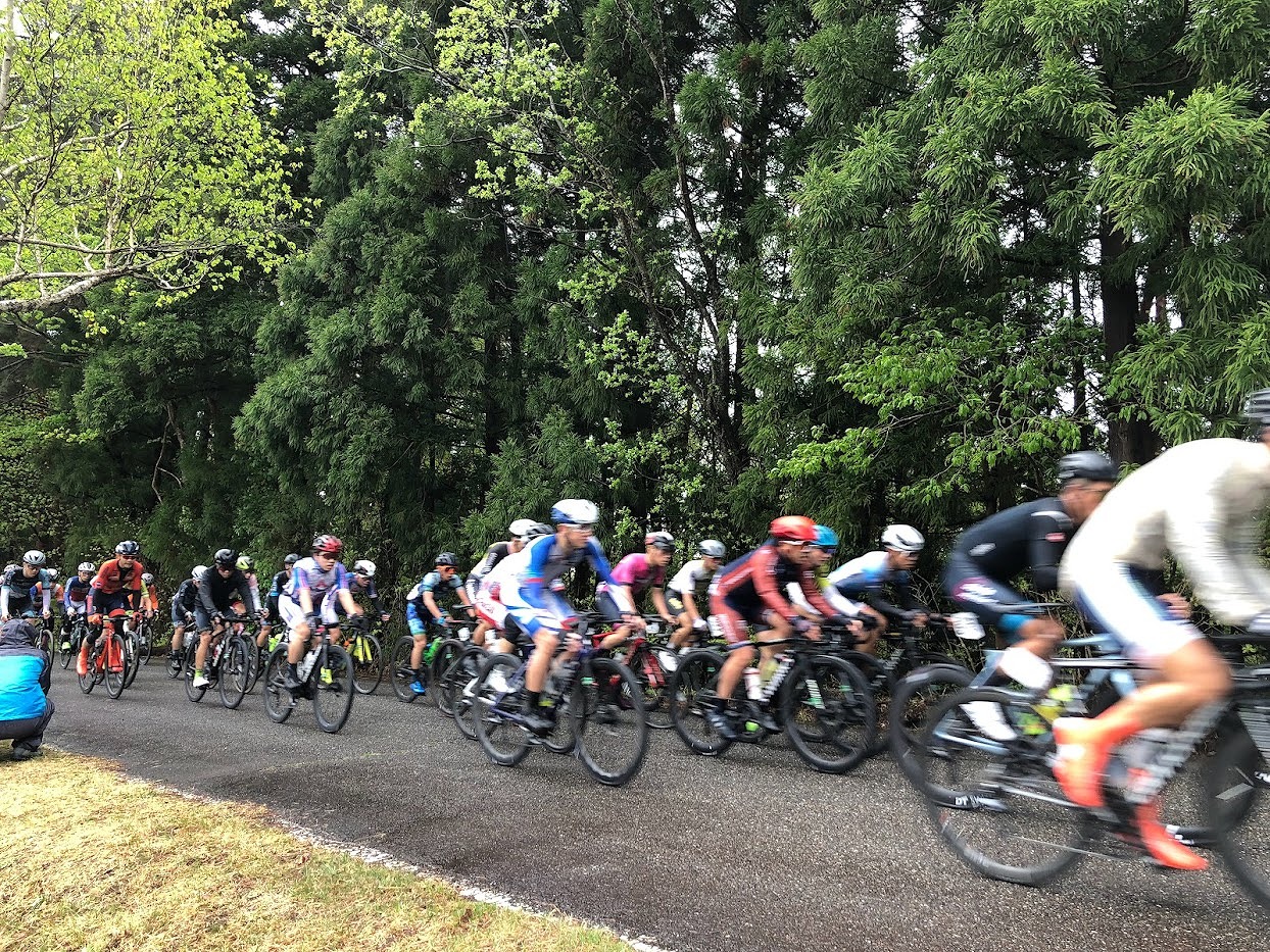定刻通りレースが開始され、最初の3kmほどはパレード走行でした。1~2周目はスタート時と変わらず先頭から5番ほどの位置で先頭交代を行いながら、キープしていました。序盤の集団の速度はMax60km/h近く出ている区間もあり、選手同士のふるい落としが行われていました。私は耐え切れず、3周目に入る前後ほどの登り区間で先頭集団から千切れてしまいました。