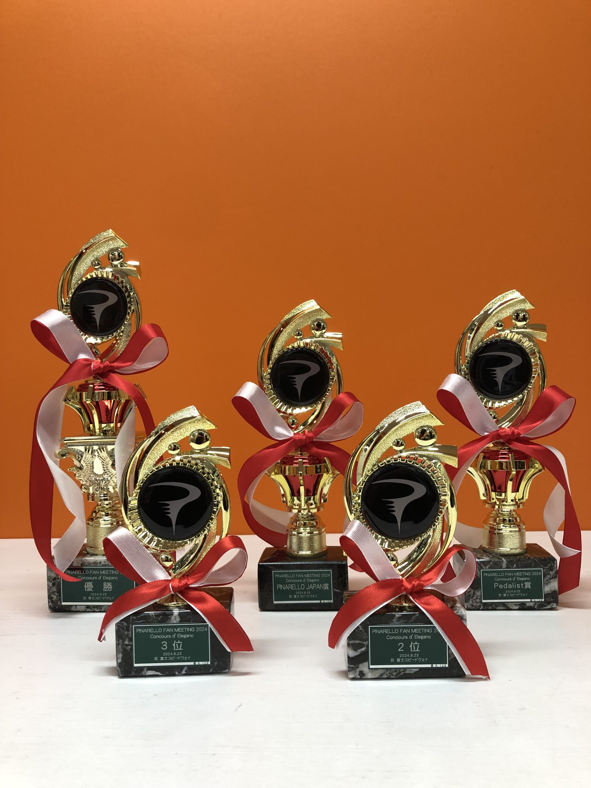 入賞者の皆さんにお渡しするオリジナルトロフィーも作成いたしました. ピナレロロゴ入りの特別デザインです。
