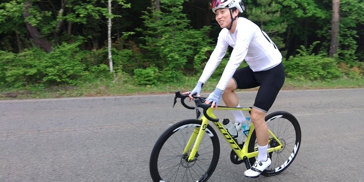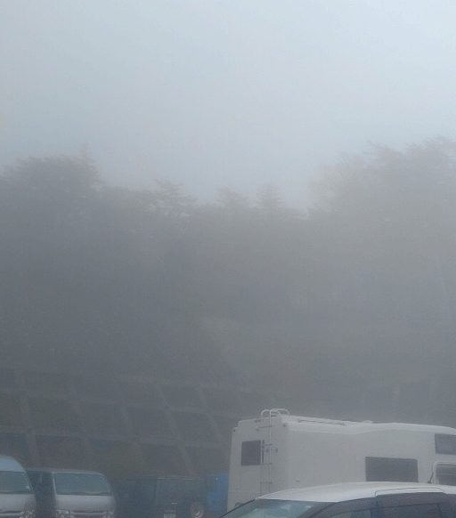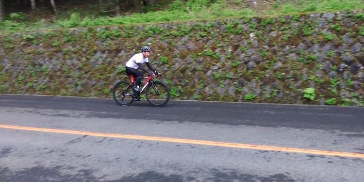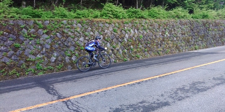ゴール地点の5合目は曇っており、気温が低くため、下りは安全面も考慮して、スタッフの山崎と山田が自転車で下り、参加者の方々にはハイエースで下ってい貰いました。