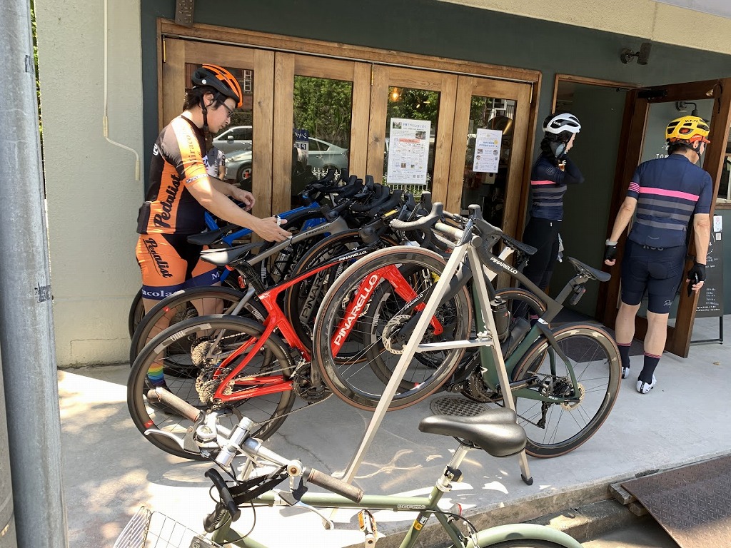 お店の前に自転車ラックもある為、サイクリストには嬉しいですね。