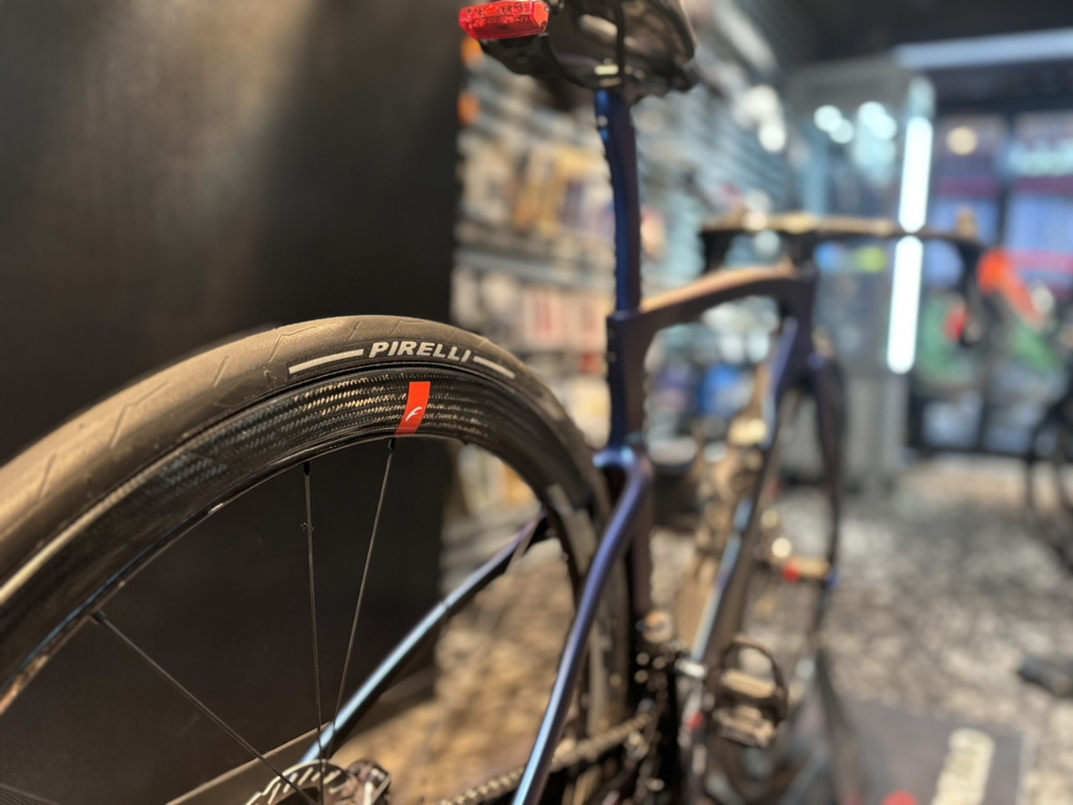 まずは私、山田のバイクをご紹介します。 愛車は納車したての「PINARELLO DOGMA F MY25」、クラシカルなイタリアンエレガンスとモダンな技術が融合した一台です。