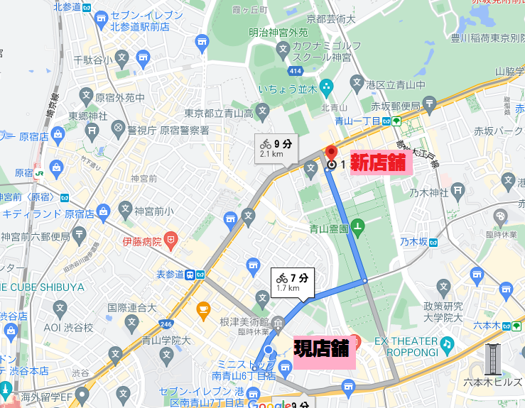 新店舗は新国立競技場のお膝元、東京メトロ銀座線「外苑前駅」より徒歩3分の立地となります。現店舗から自転車で5分ほどの場所です。 現店舗での営業は5月16日(日)までとし、新店舗での営業は2021年6月19日(土)を予定しております。詳細な日程は正式決定次第ホームページ、SNSにてご案内致します。