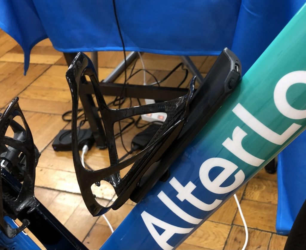 →ボトルゲージの台座を使用して装着できるため、走行時も見た目も邪魔にもならない!