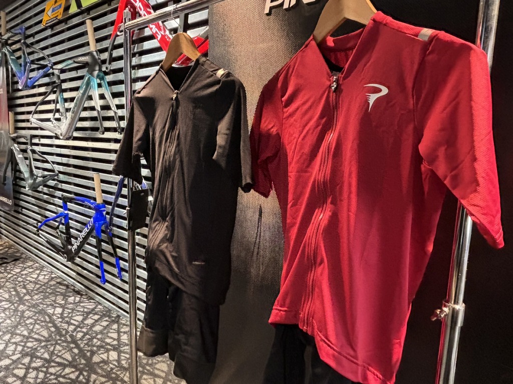 PinarelloのTシャツやフーディー、サイクルウエアなどのアパレルも取り扱っております。