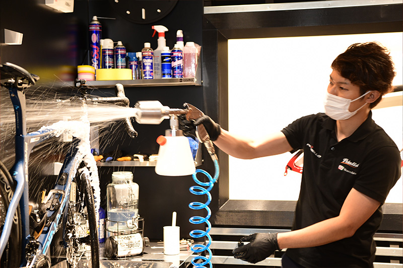 長い距離を走りますと、それだけ自転車も汚れてしまいますね。常に良いコンディションで楽しんでいただく為、洗車サービスを特別価格にてご案内いたします。