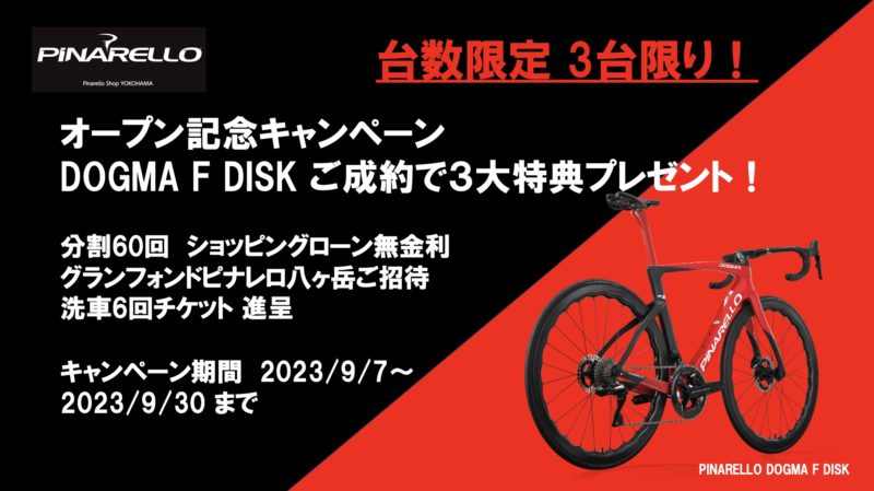 青山店に続き、日本で2番目となるピナレロ専門店のオープンを記念してDOGMA F購入キャンペーンをご用意いたしました。