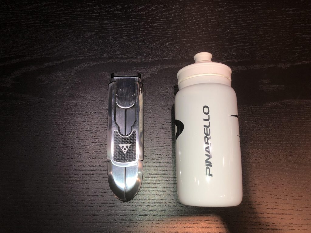 →ウエアの背中のポケットに収まるので場所に困らなくて助かります!サイズは500mlボトルよりも少し小さめです(画像参照)