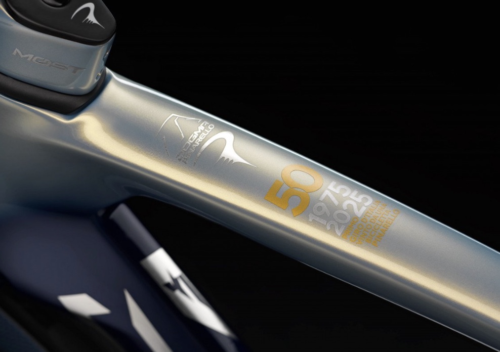 印象的なカラーリングに加え、ドグマF エディツィオーネ・スペチアーレは、ブランドの創設者とその起源を称える特別なGPT(ジョバンニ・ピナレロ・トレヴィーゾ)のディテールがフォークに施され、トップチューブには50周年記念のデカールが施されています。さらに、カスタムペイントされたプリンストン・ウェイク・ホイールも装備されています。