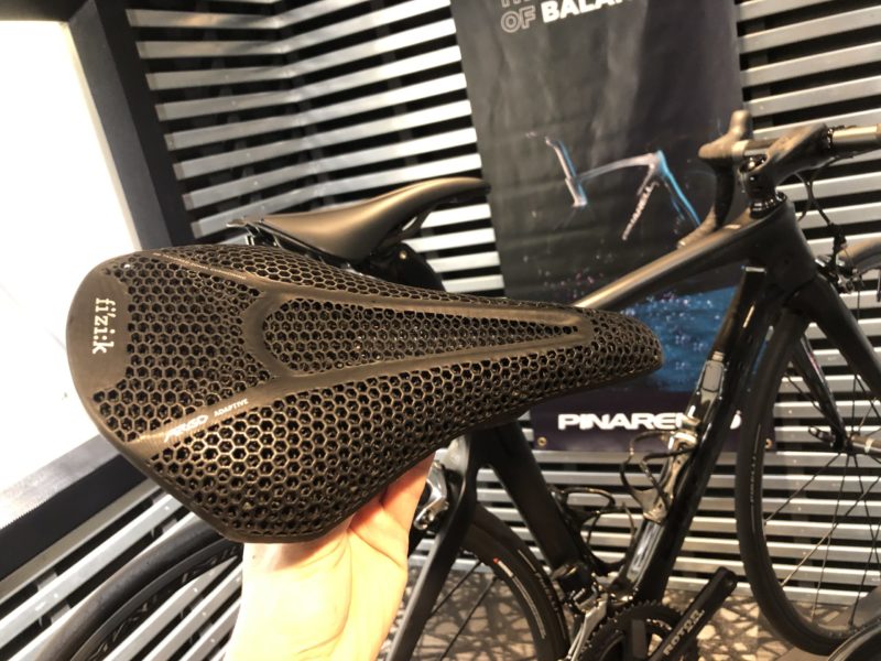 もともとフィジークのアリアンテを好んで使用しておりますが、3Dプリンタサドルというビッグウェーブに乗らない手はありませんので試してみました。3Dプリンタメイドのサドルは部分部分で硬さが調整されており、いわゆる「使い込んだサドル」のようなしっくりくる感覚が新品状態から得られる、という良好な感触でした。
